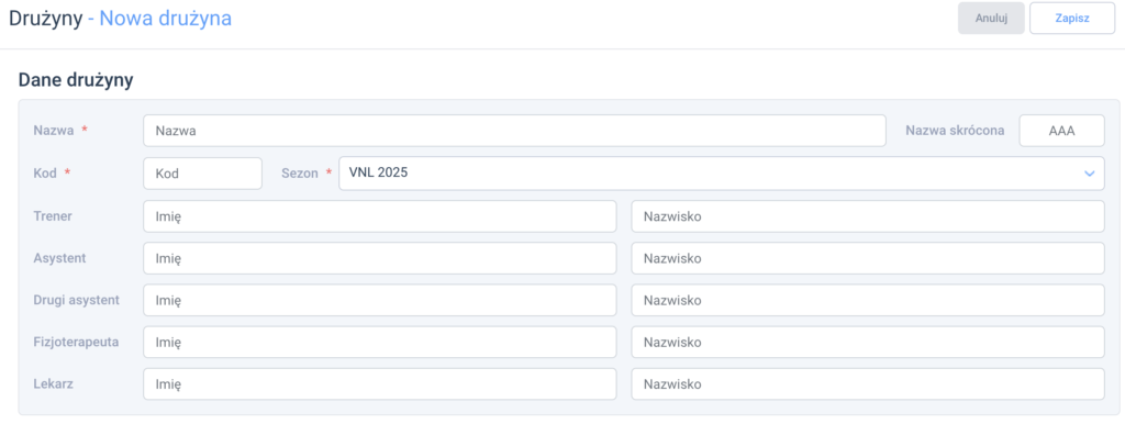 Po wprowadzeniu całego składu użyj przycisku Zapisz – i drużyna jest gotowa do działania.